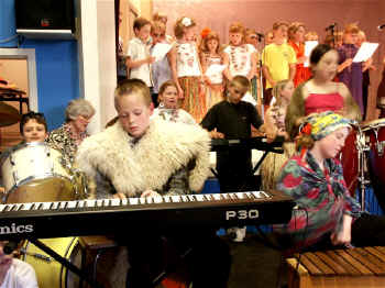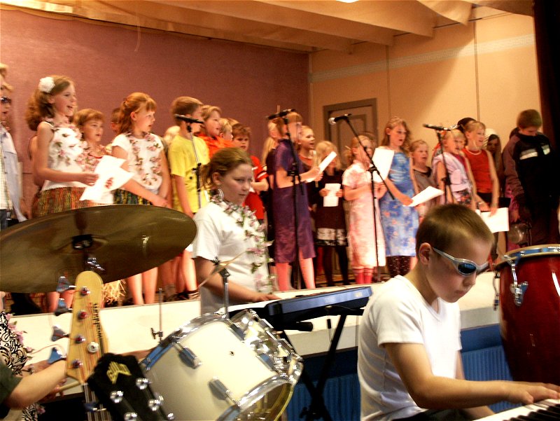 Elever fra 0-6.klasse samt valghold underholdt flot de mange forældre og