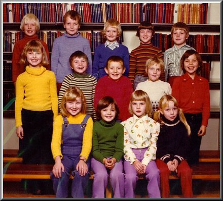 Vi har foto både fra 1. & 7.klasse af årgang 1974.