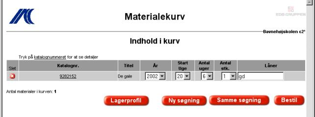 Klik på læg i kurv, hvis man vil bestille materialet.